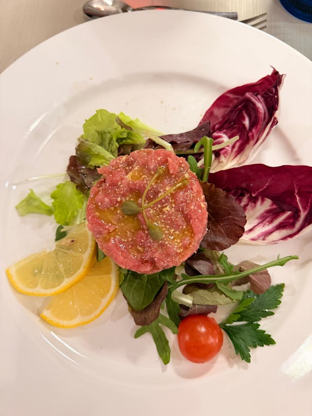 - Tartare di filetto di manzo ai capperi con olio biologico DOP del garda