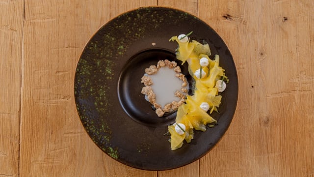 - Carpaccio di branzino su crema di zucca e la sua dadolata