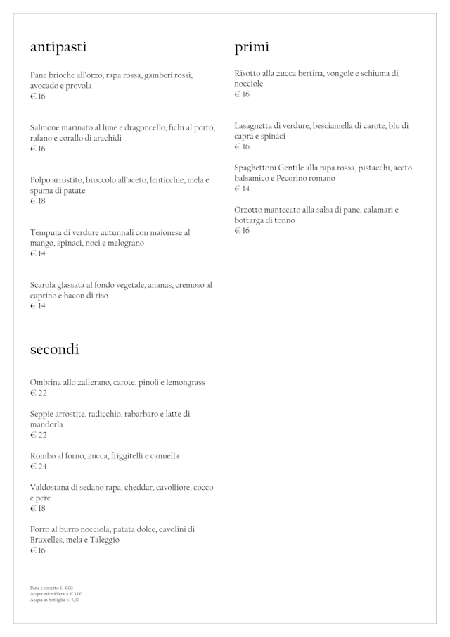 ItalianMediterraneanPiacentinoVegetarianEuropeanContemporary cuisineCreativeFine DiningGluten freeVegetarian dishesAmerican ExpressDog-FriendlyWheelchair AccessibleWifi