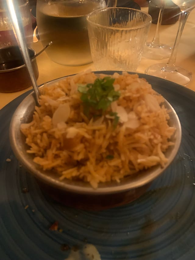7/10Butter chicken was really good. Naan was very tasty as well. However the rest of our dishes (madras curry and tika masala) were unfortunately very bland. Also charging 4€ for plain rice is a bit too much considering that the portions were small.