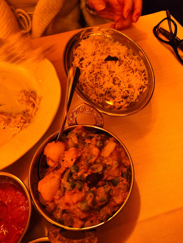 - Riso basmati cotto con verdure, frutta secca, formaggio indiano e spezie