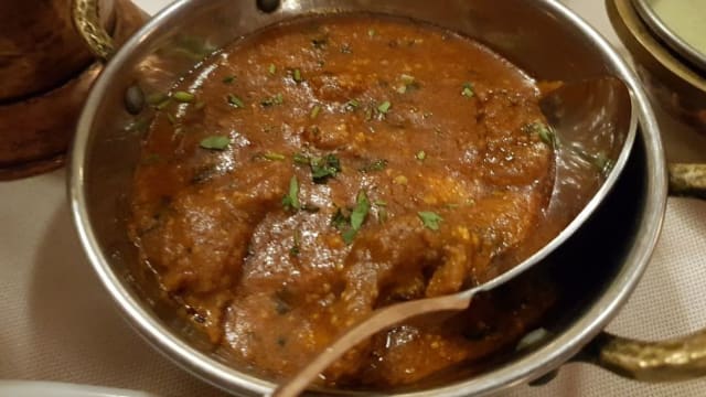 Angello preparato in famoso stile kashmir servito con erbe fresche orientali.