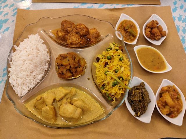 4.5/10The veg samosa was amazing, the aloo was really good. The Thali was horrendous - watery curry, day old rice, etc. Just terrible. Paper plates and bowls, cheap wooden utensils. Staff was nice. Price was average.