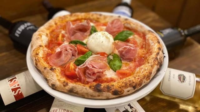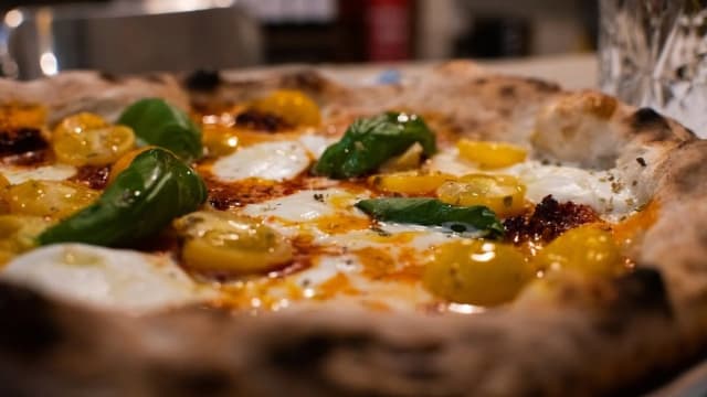 Mozzarella di bufala campana DOP, 'nduja calabrese, pomododorini gialli, basilico.