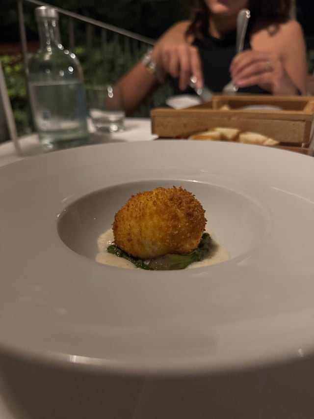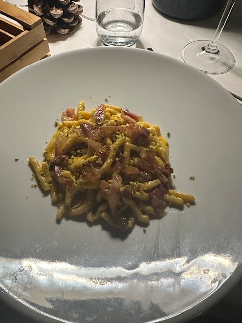 10/10Incredible table on the terrace with view of the clock tower and sunset over the valley. Attentive service, very good value for money for the tasting menu, excellent food paired with local wine.