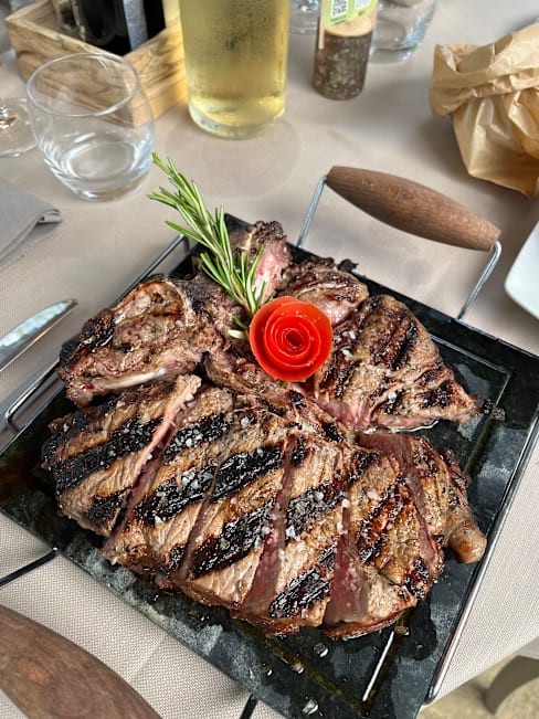 8.5/10A lovely place to have dinner and the food and wine is very good but we did have a couple of issues: the bruschetta arrived after the main courses for some unexplained reason, and one of our steaks was well done when we asked for medium rare, and the waiter tried to convince us it was medium rare. Irritating. If you make a mistake, fix it. Don't deny it.