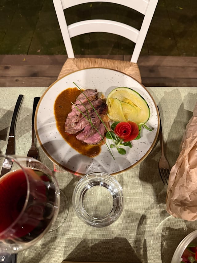 3.5/10Never expected re-heated food in Italy. Duck and pork was cold and chewy. Dirty welcome dish plate. Clearly quantity over quality. Prices way too high for this kind a food. Cheap decorations. Tourist trap. Avoid and don’t believe good reviews.
