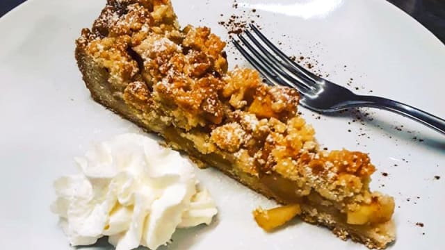 7.5/10We ask to have a table outside in the garden. When we arrive someone explains that there is no More table outside. The road is very near so it is not very confortable to talk. Food is good.