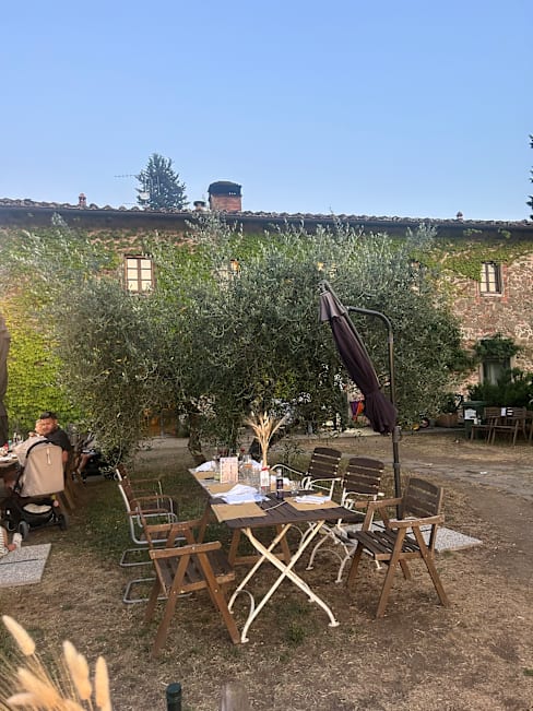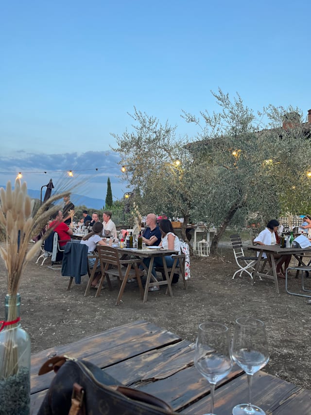 10/10+4Wow, what a fantastic place, a hidden gem,an agriturismo on a mountain, with a view of the Tuscan landscape. Seatings outside, under the olive trees in the spacious garden. There is a little playground for kids to play. The food and service were authentic and fantastic. Prices are quit good, we even had one of their top wines, a Brunello. We were so glad we found this place, away from the mass turism. It was nice to have my birthday dinner at your place tonight! We highly recommend this nice and romantic place !