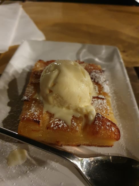 6.5/10Food was good for camping restaurant, but for Italian we expected better. Lots of muscle parts in the beef for example. Please be aware of the very high level of noise and compact table setup. Chairs will be bumping into each other all the time.