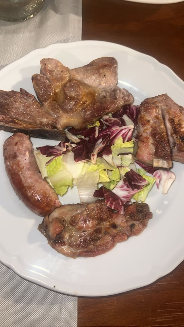 7.5/10Beautiful venue/ambience and friendly service. Food was a bit hit and miss. Starter was good (mushrooms on toasted bread) and the primi of bacon spaghetti had a great taste but seemed like it had been warmed up. The main was just some diced chicken cooked in a bit of a light marinade over some lettuce for 18 Euros. Not so good. Wine by the glass was average.