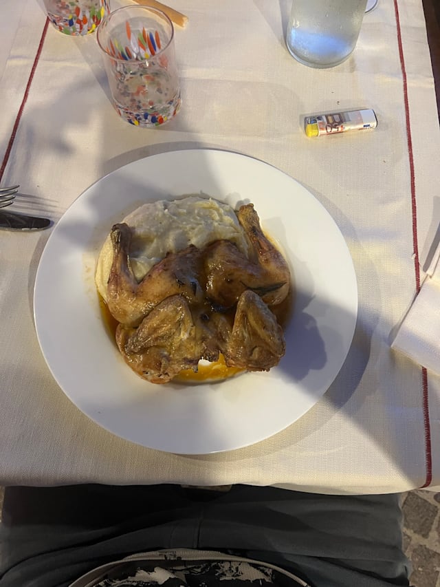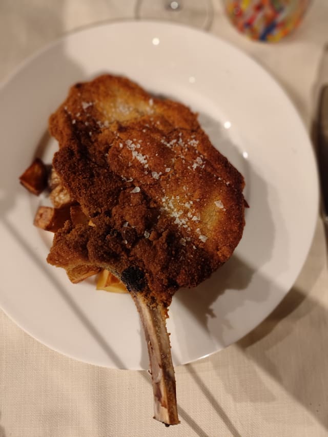 6/10Nice atmosphere Sympathetic staff Ok service But the cotoletta was impossible to eat. I could never serve to people such a dish. We told them nicely and they did not even apologize. It was all fat, 90% of the dish. Never had such a bad costoletta in my life. You cannot serve this dish. The rest was fine, nothing special nothing bad. They need to improve and then the restaurant will be levels higher