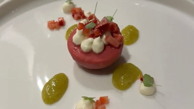 Uovo 65°c con pappa al pomodoro, salsa di mozzarella di bufala