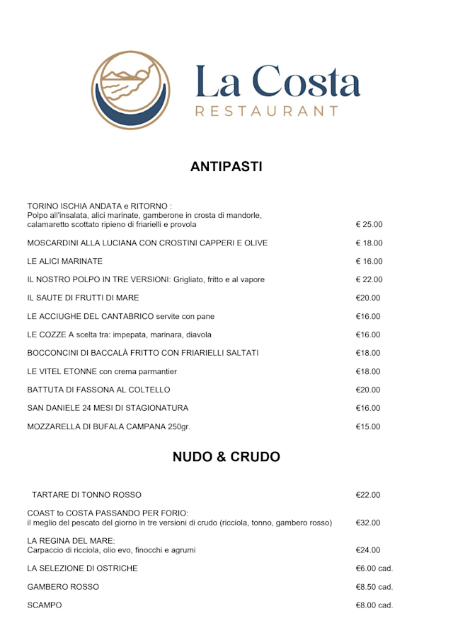 Ristorante La Costa is identified as offering italian cuisine.