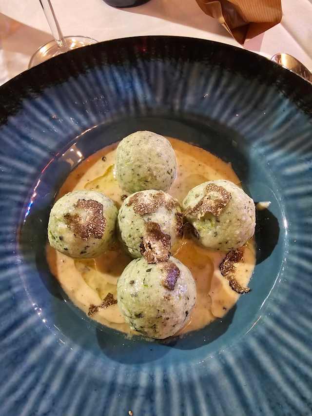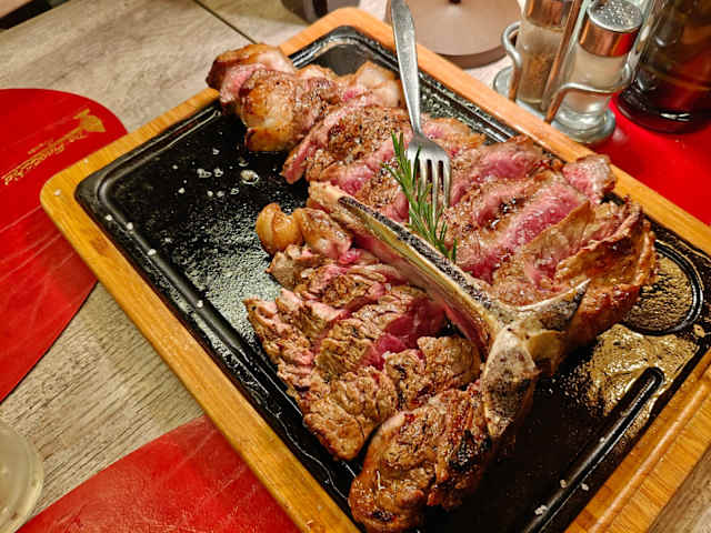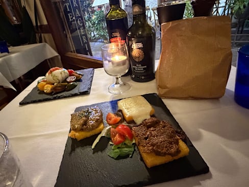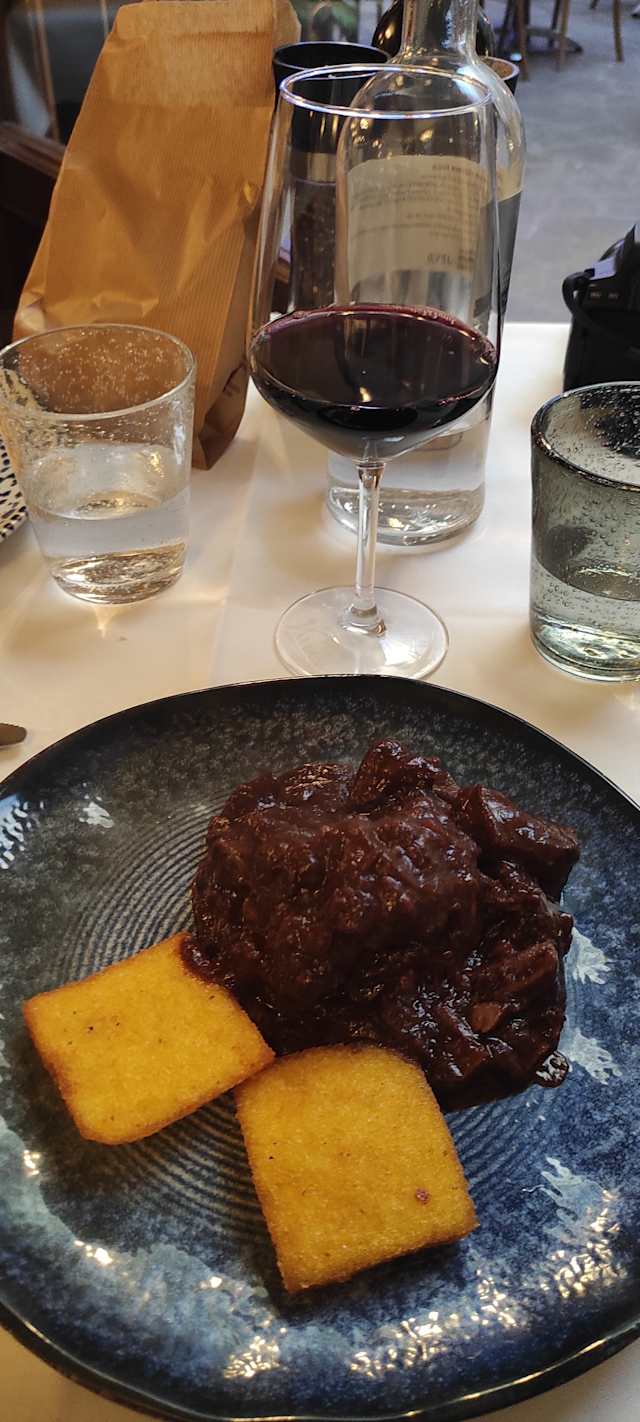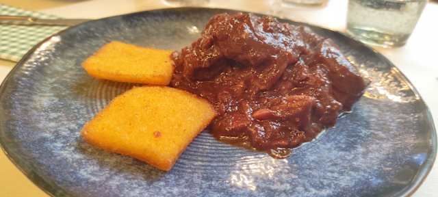 Hi Guy, thank you for visiting us. Tuscan black pepper beef stew and fried polenta, this is what you ordered, and everyone expects to see many peppercorns in it. We follow this Medieval recipe since 1967 and get compliments daily, not only with your ""Ok with the fork discount"". It's sad that you didn't tell to our friendly service persons about your disappointment, we could have recommended something different to you. Have a good one Daniel
