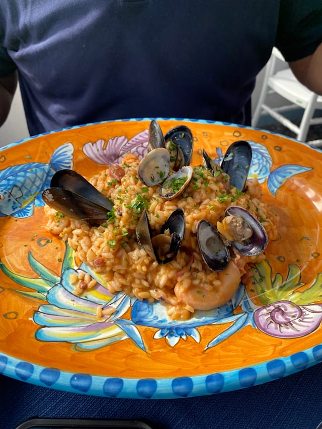 10/10We ate here on the first night we arrived in Praiano. We took the bus - just 10 minutes along the windy road (hold tight). We booked online for 8pm.. We were warmly greeted when we arrived at 7:30pm and given a table on the terrace over looking the water. Beautiful rose and incredible seafood risotto! We finished the night with a home made cheesecake pistachio- so yum! Highly recommend for a quiet, relaxed dinner.