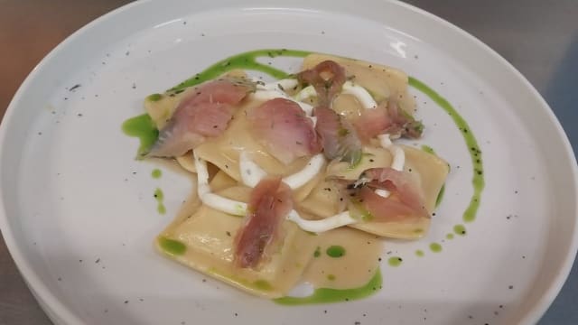 Gnocco verde con orata, pomodorini ed essenza di basilico