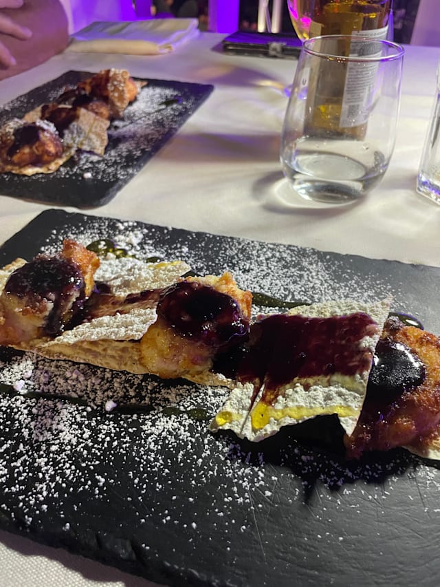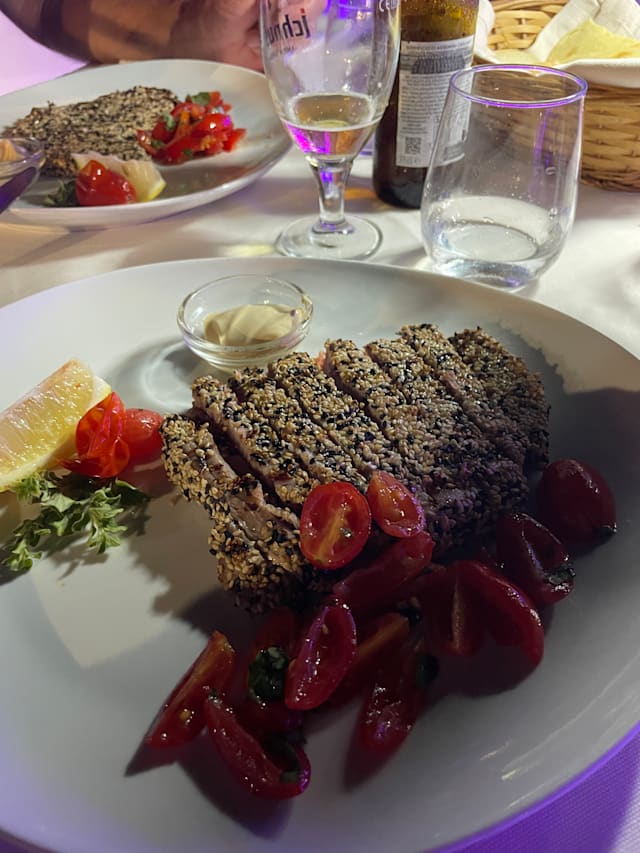 4.5/10The staff misrepresented the size of the fish of the day by a factor of 3 . I should have been suspicious when he didn’t bring the uncooked fish out to ok as most reputable restaurants do. He told us it was 1 kilo and it turned out to be 3 kilos- so three times the price and an absolute waste of food. We were a party of two! Sadly it wasn’t all that good either. Vegetable fregola was bathed in an oily soup. A house glass of wine is an exact 100cl measure (it’s actually marked in the glass) - which in my experience is only slightly more than is traditionally provided for tasting. View is nice, but you can get that simply by driving by and that would be my recommendation.
