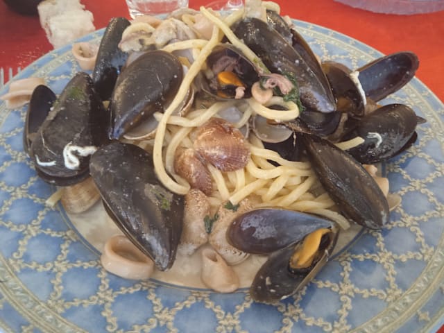 9.5/10This restaurant was recommended by a friend of mine who is a local around that area and I saw it here on the fork. It was a busy Sunday but the service of these two old men was amazing! I wasn't in a hurry to eat something and then the service was so fast and not to mention the portion size is amazing! Also the price itself was so affordable for a seafood pasta! Everything was fresh and also somehow treats you like you were in your uncle's or grandpa's house. It was such an amazing discovery and will definitely recommend my foreign friends and would be back! See you guys again!