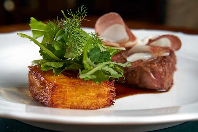 - Controfiletto di manzo, lardo e patate