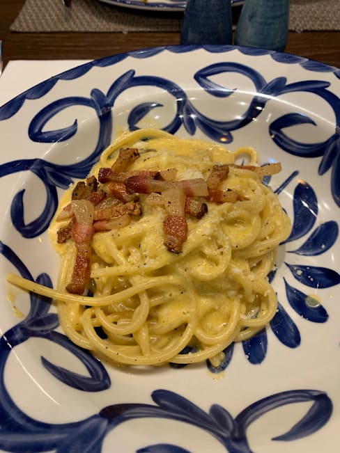 7.5/10Lovely food and there was great live music too. Carbonara spaghetti was not a big portion sadly, however it was incredibly tasty. The waiters were friendly! Sometimes you had to wait while to get our drinks/food but it was very busy and I can understand why. Nice food and good atmosphere! We do recommend :)