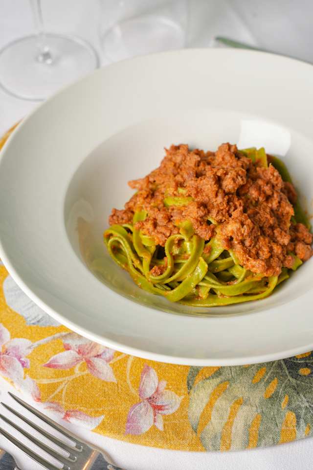 - Passatello asciutto con ragù di cortile, pepe del sichuan e frutti rossi