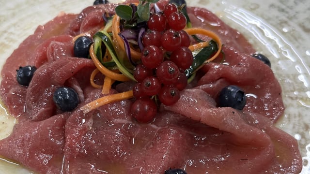 Carpaccio di carne salata con formaggio vaccino e giardinetto di verdure in agrodolce
