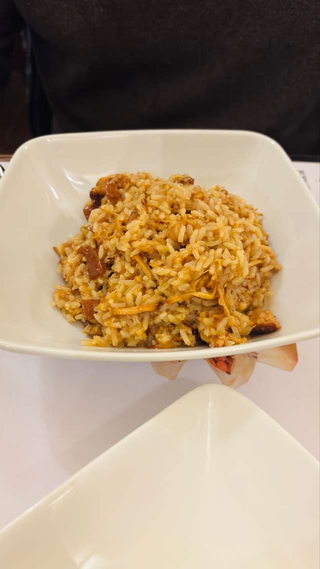 - Riso saltato con uova *gamberetti e fagioli di soia insieme a dadini di carote e cipollotto fresco.