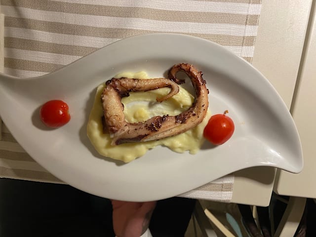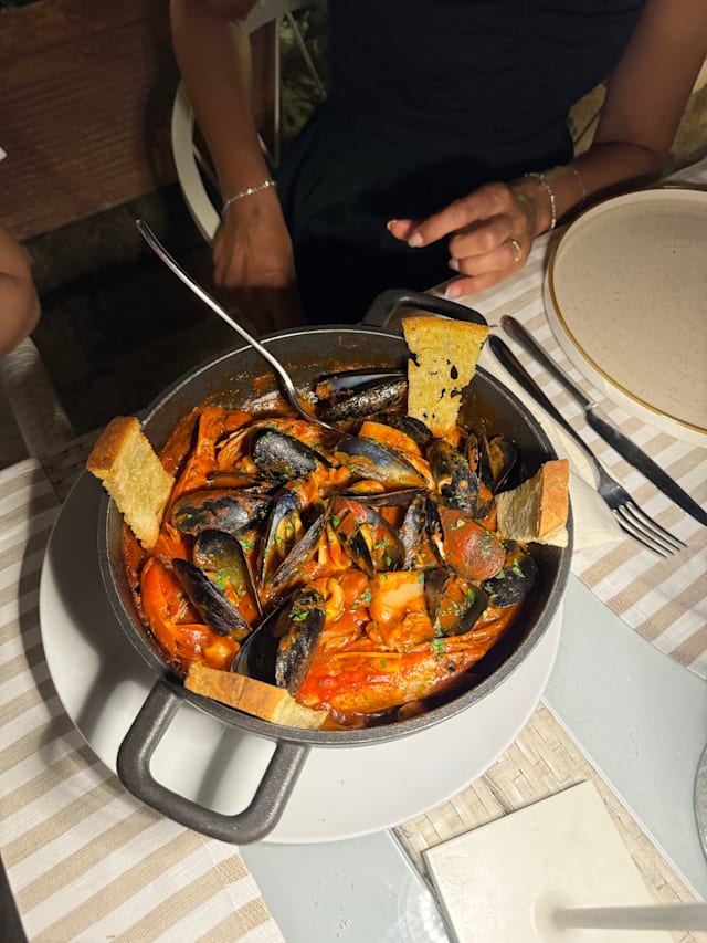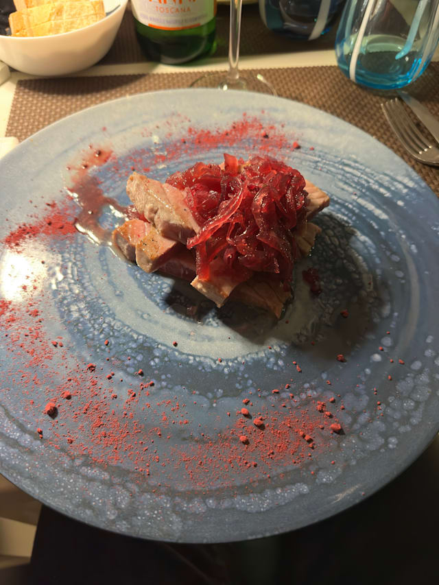 6/10The menu looked good and different to many we have seen recently in Italy. The wine selection was also good and reasonably priced. Sadly my wife’s monkfish was partly raw and my spaghetti was slightly undercooked although still edible. The staff seemed unconcerned although did offer to provide a replacement dish but at that point I had finished my meal and my wife didn’t want to wait whilst another was cooked. Pity it looked promising when we sat down but the staff didn’t really seem bothered and weren’t in the least apologetic
