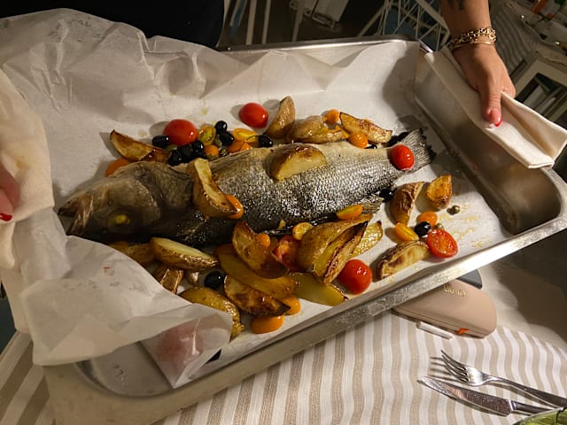Dear mr. and Mrs. Haggie, i am Lara who followed during your meal. Even if one piece of 4 was non well cooked, but you ate all of your fish, i asked if you liked something else or different. You said no,thanks. It is difficult when people don’t speak italian in Italy. And people don’t speak and look in the face!!