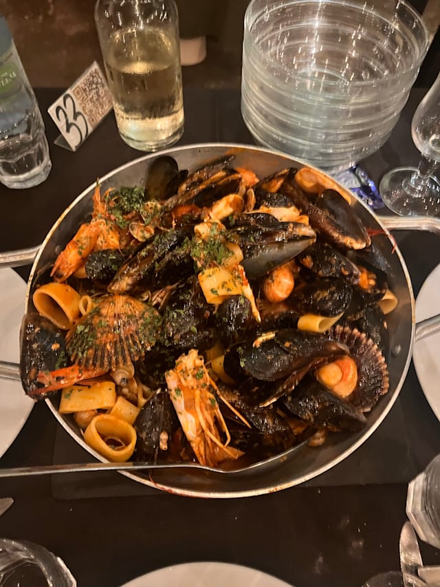 7/10With Antipasti dello Chef were disappointed but the Pintolaccia with seafood and Tagliatelle was amazing.