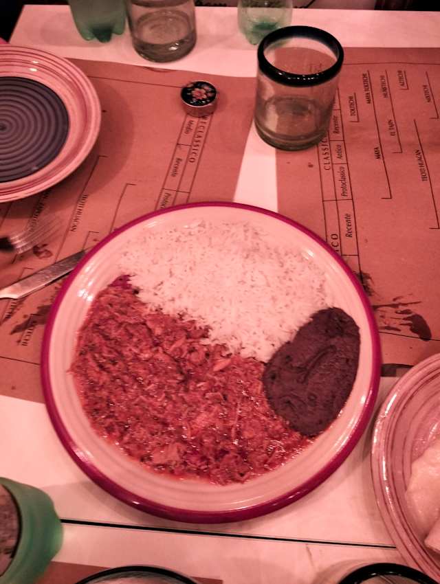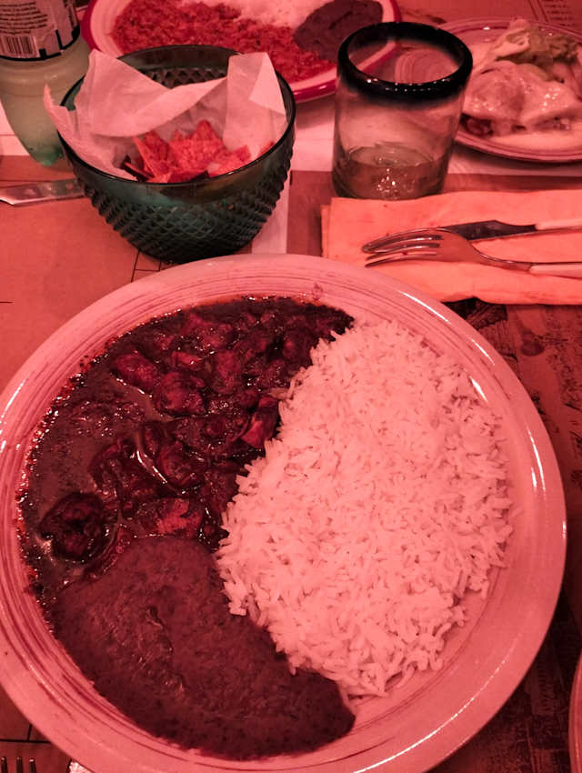 Tortilla ripiena di salsiccia macinata, chile jalapenos, e salsa a base di pomodori, cipolla, peperoncino e coriandolo fresco piccante medio.Servito con riso, crema di fagioli