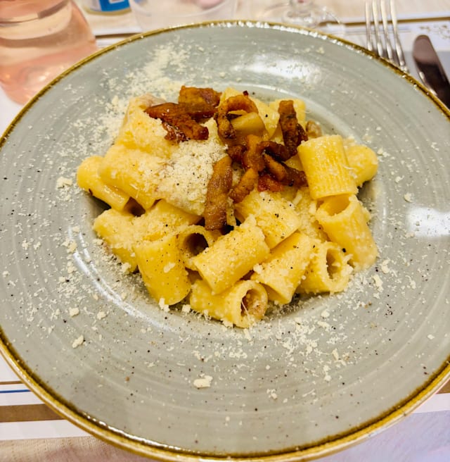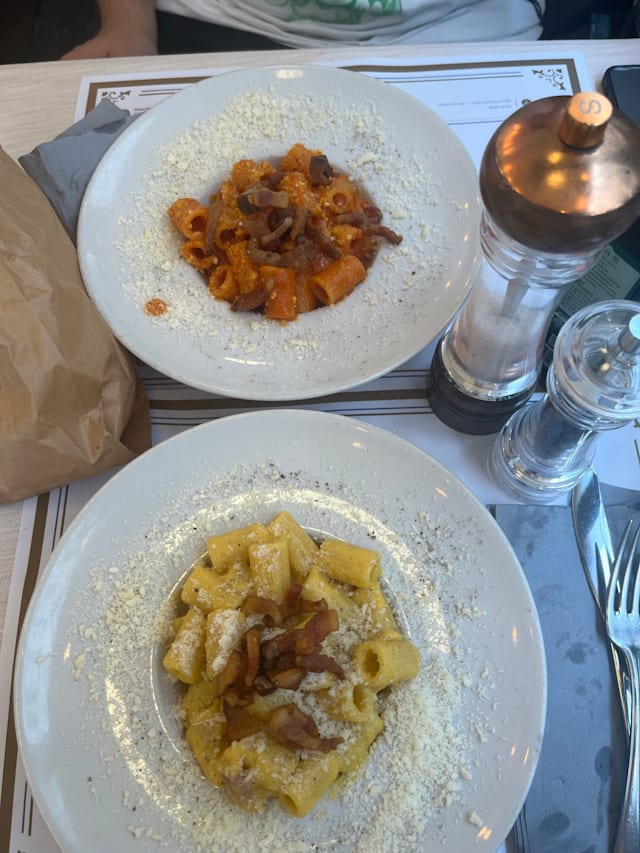 2.5/10We arrived at the scheduled time and there were tables available. The service was rude and lacked class. The dishes arrived at different times, and I waited for the second dish to arrive while mine cooled down. The quality of the ingredients is low. My carbonara came with ham instead of bacon. And my wife's pizza came with no sauce, just cheese.