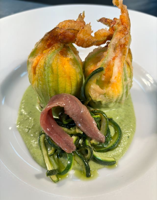 Ripieni di ricotta di bufala e maggiorana su zucchine croccanti