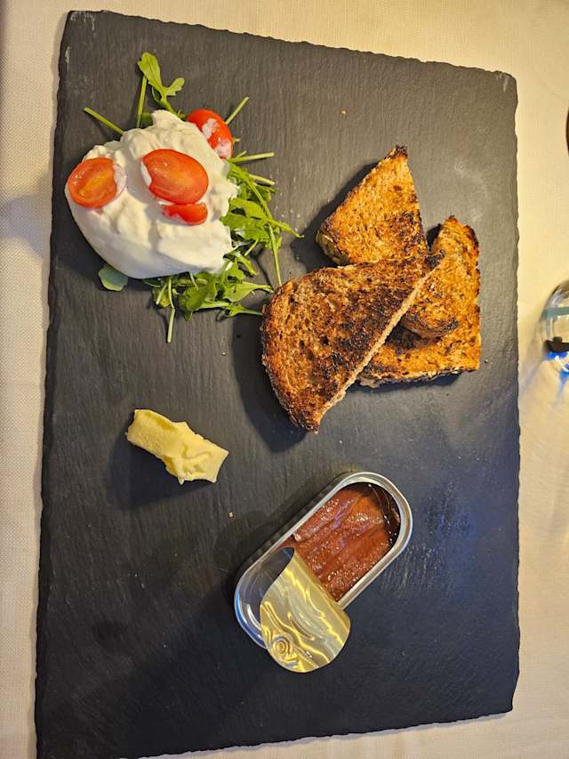 Verrà composta davanti a voi con i seguenti ingredienti scalogno, cetrioli sott’aceto, tuorlo, capperi tritati finemente, prezzemolo, brandy, senape. Sale e pepe servita con pane caldo e burro