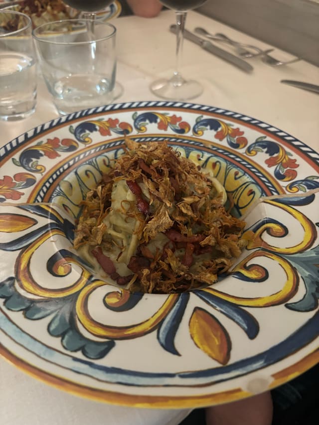 4/10On a Thursday night, we were the one of a few in the restaurant. The waiter was very impatient and unfriendly. We didn't speak Italian and he didn't offer very much help. We felt like we were an imposition. I would not recommend this restaurant. For our last night in Rome we were very disappointed.