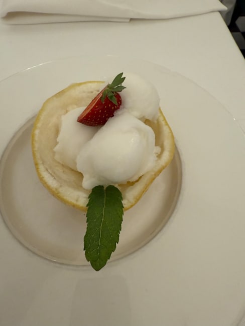 9.5/10We chose the 6 course vegetarian menu, not because we're vegetarians, but just because the courses appealed to us. However, this was I've of the best meals I've ever had. Each course was thoughtful and delectable. We were also presented with a welcome prosecco and a choosing limoncello with assorted cookies in the end. The waiter and waitress were sophisticated and kind and warm. An overall excellent experience.