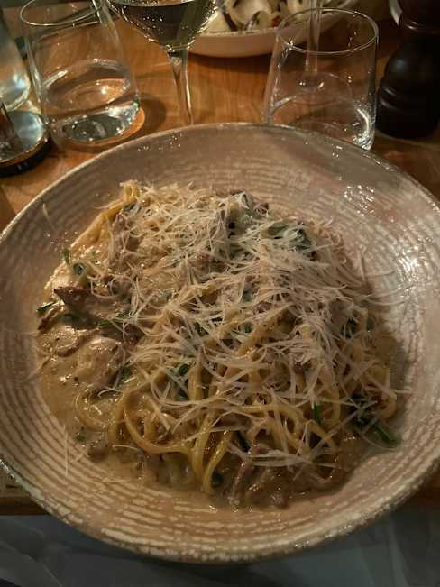 9.5/10I recently dined at this Italian restaurant, located in an area with plenty of options. The restaurant is medium-sized, with well-spaced tables. The menu offers a good variety of dishes, and the food was impressive in flavor and quality. Presentation was lovely, making the dishes almost too good to eat. Our server was knowledgeable and helpful, checking in regularly. Service was top-notch, even on a busy Saturday night. The wine selection complements the menu nicely. Overall, I'd highly recommend this restaurant for a delicious Italian meal in a pleasant atmosphere.