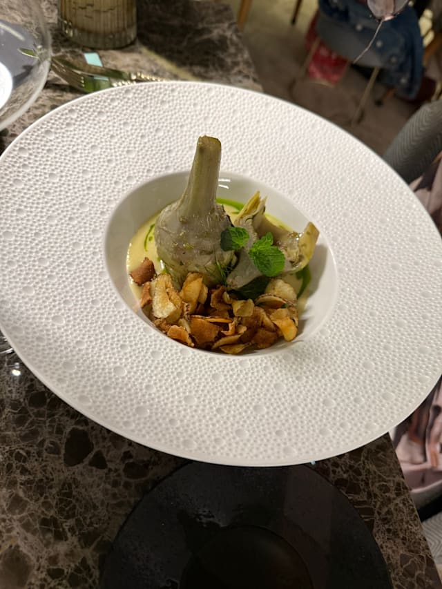 6/10Stunning view and good food, but chaotic service ruined the experience. Despite being the first seated for our 8:15 reservation, wine didn’t arrive until just before our first course. Staff seemed uncoordinated, with no clear leadership. Our water was placed out of reach, and refills were nearly impossible to get. After dessert, it took over 25 minutes and asking five different people—including a manager—for our bill before it finally arrived. Only the hostess showed urgency and professionalism. For a 700-euro dinner, the lack of basic service was unacceptable. If you go, enjoy the view—but don’t expect smooth service unless you’re staying at the hotel.