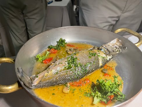 6.5/10We were excited to go here after reading the reviews, we traveled with our mother/in law and our son. The restaurant is beautiful, and the staff was helpful as we sat down and ordered our drinks. We ordered three courses including a whole fresh fish (which would obviously take a while to cook), and the octopus for our son. Our drinks and his octopus came out promptly and delicious. Then a party of about 25 people sat down. The service went down hill from here, it got ridiculously loud, and we felt forgotten. We didn’t receive any food until my son was completely done eating, then, as the food did arrive, our server took forever to fillet the fish. He kept attending to other guests as our table and our poor fish sat helplessly waiting. As our food was finally served, the large party now proceeded to get louder. (I’ve run out of characters or I would go on). The food was great, however very expensive (we knew that going in). The desserts came out promptly, and were the star of the meal.