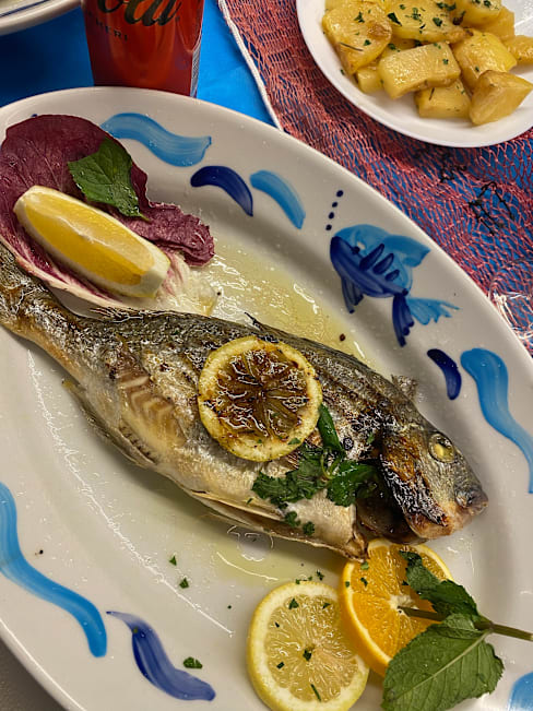 10/10The view of the water, strolling musicians, the sunset, fresh fish (sea bass was excellent). It was wonderful!