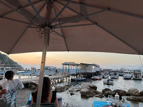 10/10Fabulous sunset setting down at the small fishing port with simple but delicious fresh fish and seafood dishes and reasonably priced too.