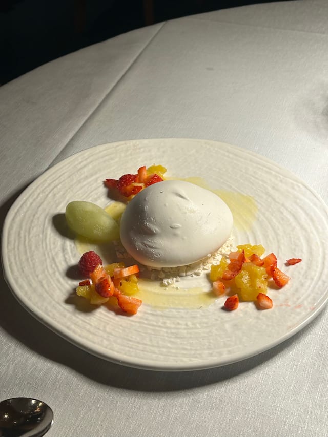 10/10Everything have been splendid! The view is insane with a 180 degree over the mountains the cost and the sea. The food was really good we took the meat and it was really nice. The dessert was really beautiful but too complicated for our taste.