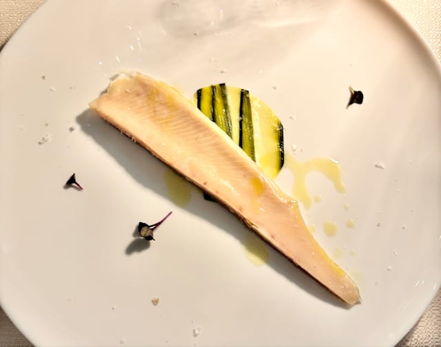 Battuta di fassona piemontese con spuma di ricotta vaccina, erba cipollina e tuorlo d'uovo in olio cottura