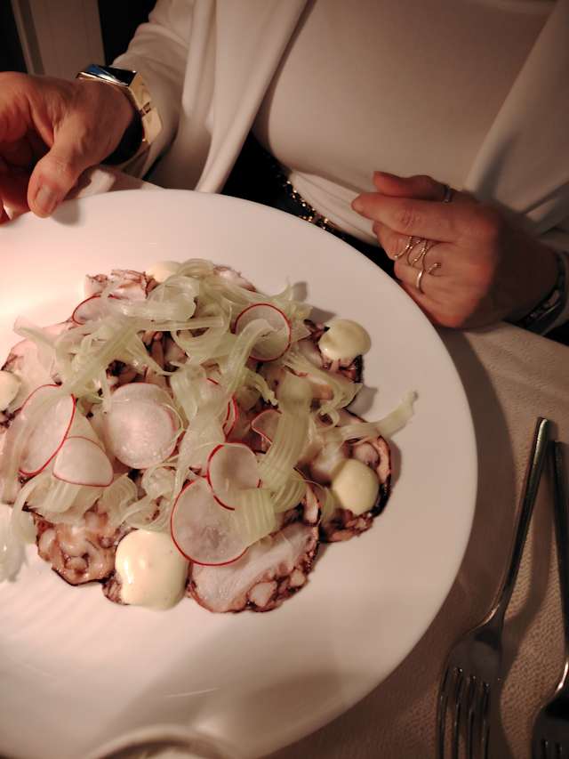 - Fusilloni freschi al ragù di moscardini di porto santo spirito e crema di stracciatella