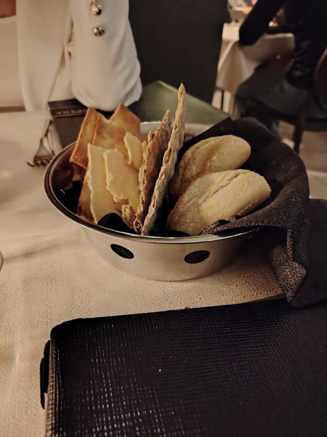 - Battuta di fassona piemontese con polpette croccanti di mela e porcini, cremoso di caciocavallo, pane carasau e sale maldon fumé