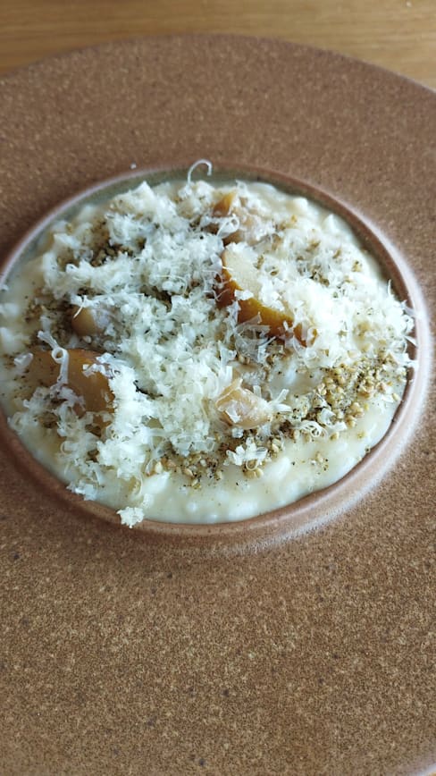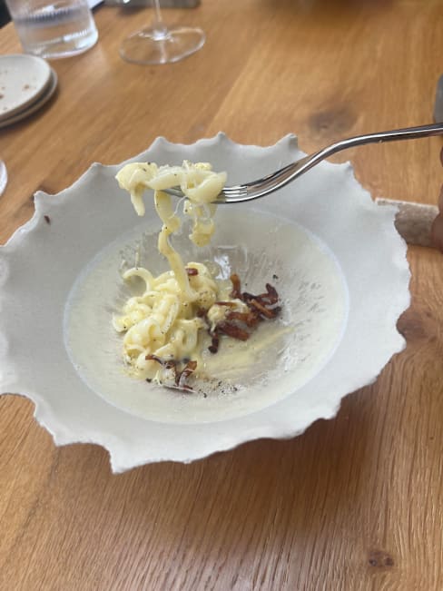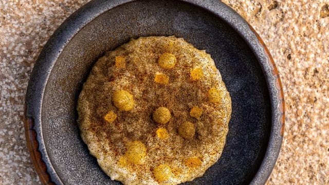 4/10Extremely disappointed with Osmosi, which is a theme we discovered to be well-known amongst locals; if only we’d known before we committed a precious night to what ended up being an absurd menu. Our table brought dialed-in palettes, substantial experience with tasting menus, and excitement around merging culinary prowess with art. Unfortunately, the only thing we took from this dinner was frustration, and frankly, embarrassment for the operation. We found course after course to be unique at the expense of enjoyment - as objective patrons, we were not tricked by the empowers clothing. Food can be art, it can push the limit, and it can showcase the chef’s personality, however being advised to “fight through” the bitter risotto is not appropriate. We were also disappointed to find an 80€ charge for champagne that was positioned as a welcome drink well before menus were delivered. Do yourself a favor and skip Osmosis, we sure wish we had.