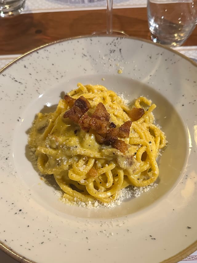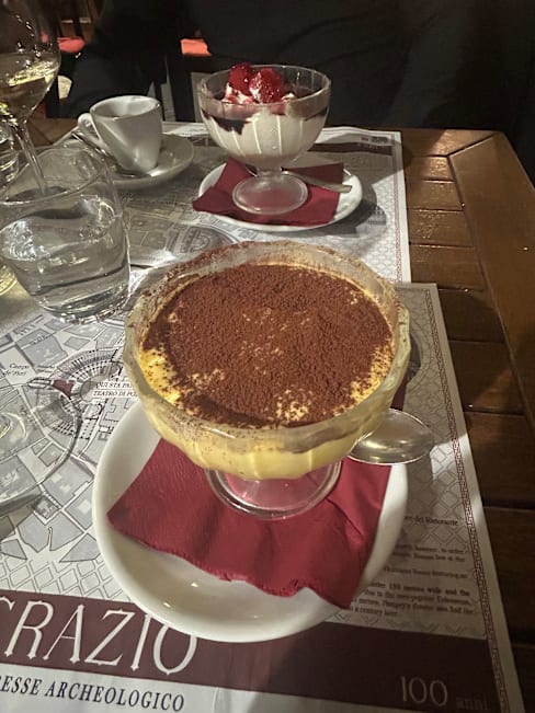 9/10We asked for a table in the basement among the ruins and staff offered us one outside. When asked, they moved us to the reserved table. The ambiance was stunning. The food was AMAZING. We had beef carpaccio to start, followed by polpette in suga, rabbit and tiramisu. The rabbit melted in your mouth, the carpaccio was tender and flavourful and the tiramisu was lush and creamy. Unfortunately, the waitstaff were likely over committed. I dropped a knife while interacting with the waiter, who said he would bring a new one and never did (luckily I had the polpette and didn’t need it). They also brought dessert while we were halfway through our second course, sat it on the table and left. Felt very rushed. We left an item on the table and returned a few minutes later - the host was rude and was playing on his phone in seconds after essentially dismissing us. Thankfully, a waiter assisted us and we retrieved our item Go for the beautiful ambiance and the five star food. Staff, not so much.