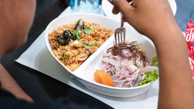 Ceviche de pescado + arroz con mariscos