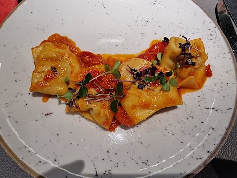 8/10Service was excellent and we received a warm welcome. The restaurant is attached to the hotel and the environment could be improved. I was facing a wall with no pictures/ decoration, the breakfast jams could be seen in the corner. Food was tasty, but the menu could be better described (e.g. we ordered "Fiore do zucca" or fried zucchini flower, it contained fish but this was not written. Although the allergen number was noted, we would have expected it to be included in the written description, that it was stuffed with fish). Good range of primi and secondi courses. Desserts were fantastic.